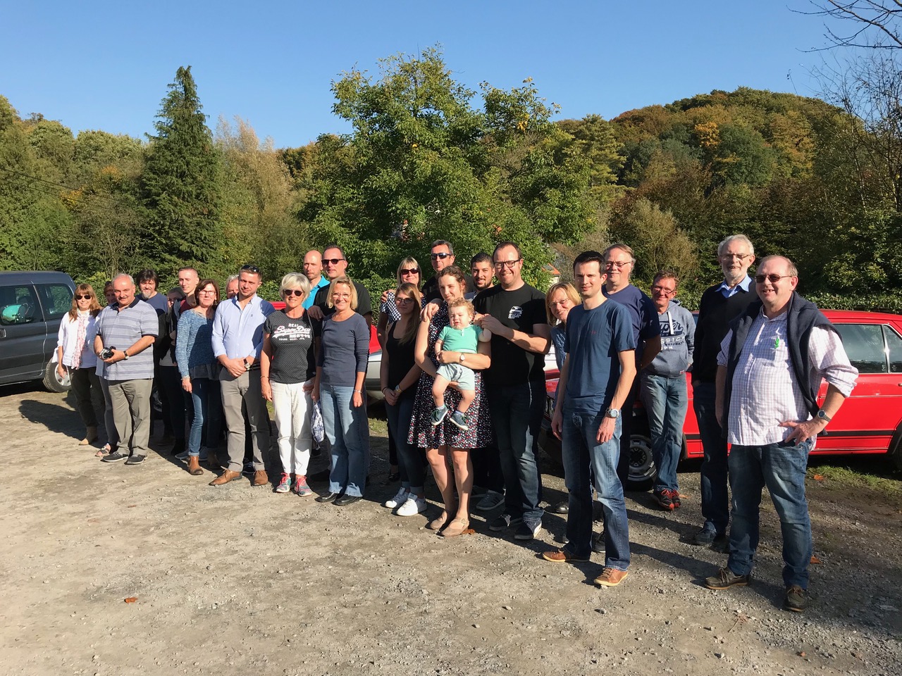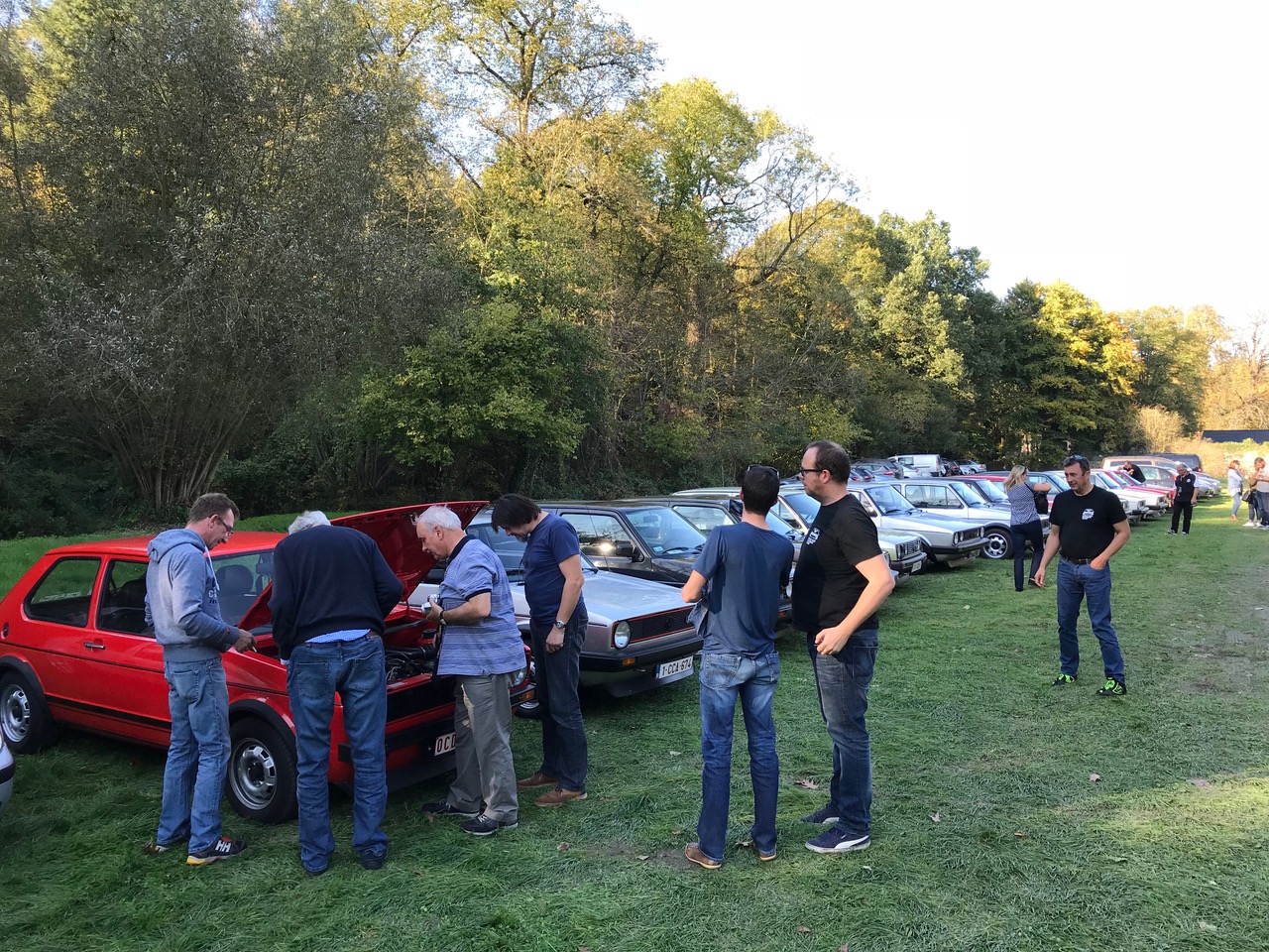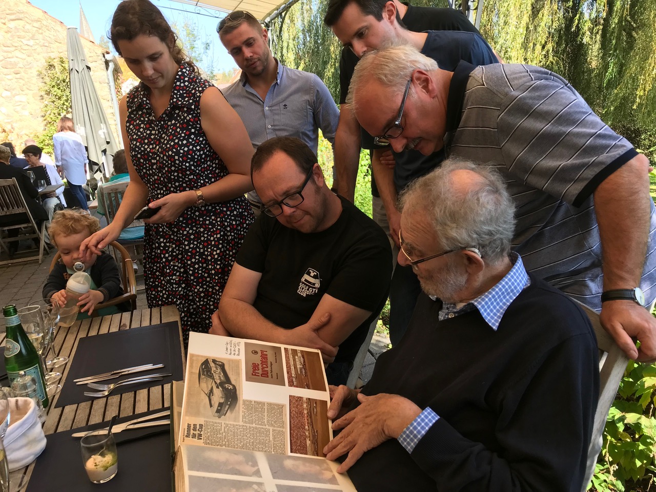 Toute la balade a été en partie éclipsée par la participation au repas de Herr Alfons Löwenberg, instigateur et concepteur de la version Sport de la Golf dès 1974. Ce grand Monsieur, nous a fait l’honneur, du haut de ses 82 ans, de venir d’Allemagne pour nous rencontrer en toute modestie. Accompagné de ses souvenirs, ses anecdotes et surtout de ses albums photos d’époque. Tout le monde était pendu à ses lèvres. Nous avons même vu une larme poindre chez Andy. Un énorme MERCI pour ces moments d’anthologie ! Et juste retour des choses, il a pu conduire la superbe rouge petits pare-chocs de Jochen au cours de l’après-midi.